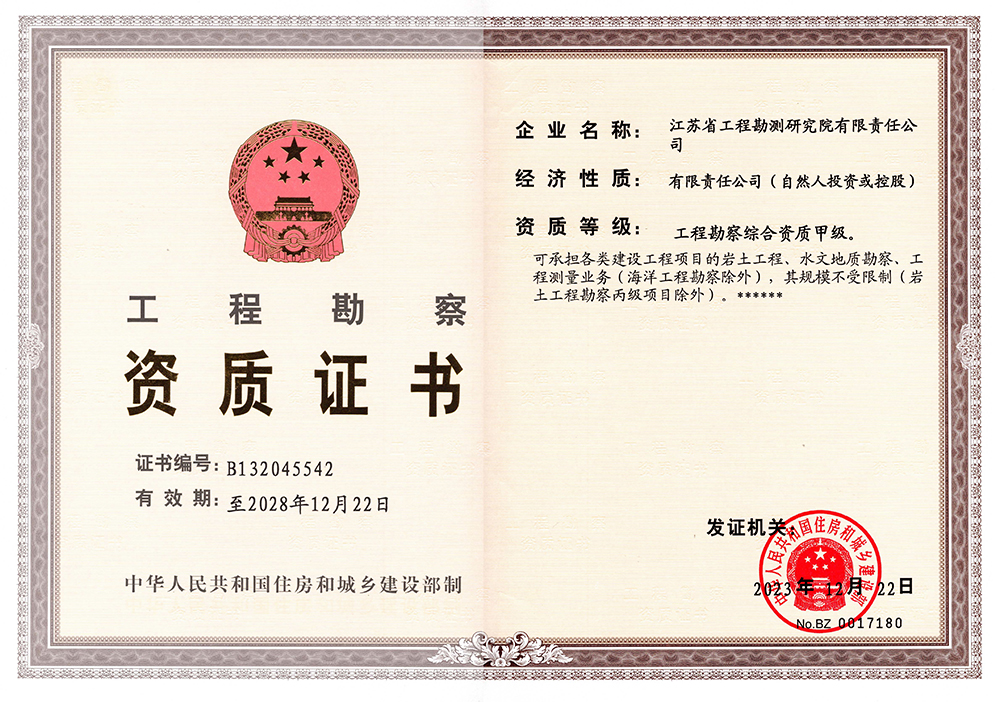 公司持有国家住建部颁发的“工程勘察综合甲级证书”,配有各类钻探、原位测试、物探、城镇排水管道探查与检测、土工试验数据自动采集处理系统等若干勘察设备仪器。业务范围包括水电与新能源、城乡建设、生态与环境等领域,专业从事建设工程勘察、工程地质、水文地质、岩土工程勘察/设计、污染场地勘察、土壤污染状况调查、地质灾害危险性评估、岩土工程监测检测、城镇排水管道探查与检测、岩石/土壤/地下水及建筑材料试验、工程咨询、地质勘察技术服务、地质灾害治理工程勘查、地质灾害评估、地下水资源调查、堤防隐患探测、穿河管道精确探测等多项业务。