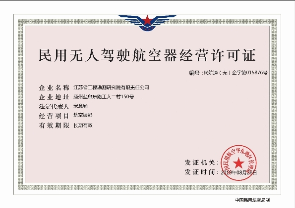 公司获得民用无人驾驶航空器经营许可证