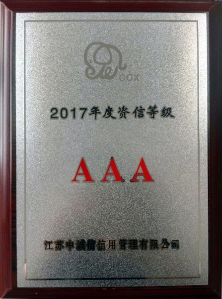 公司获2017年度3A资信等级证书
