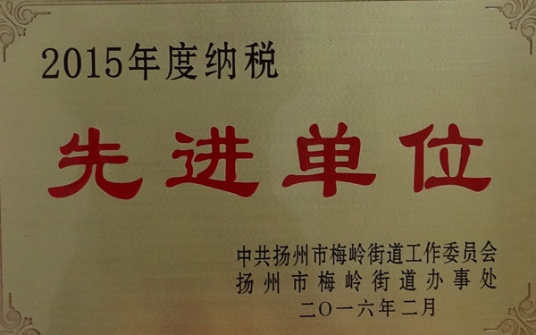 公司获2015年度纳税先进单位称号